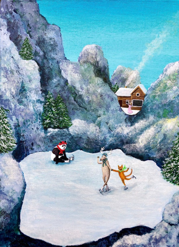 Je réalise des illustrations pour divers projets jeunesse, dont le livre » La Taille de l’amitié » de l’autrice Anne Dumas sorti en 2021 en auto-edition.